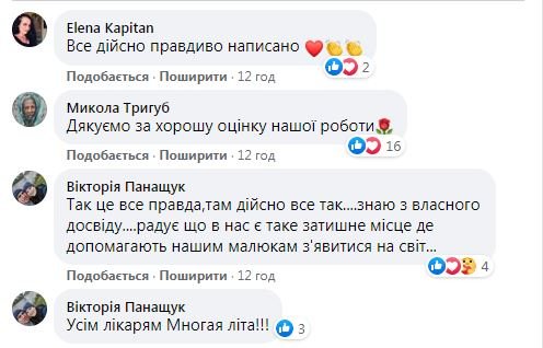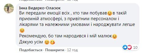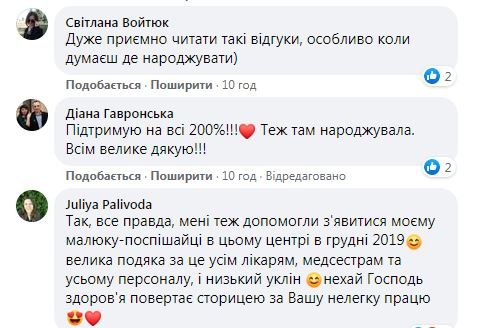У коментарях під дописом Ірини інші пацієнтки перинатального центру також поділились своїми приємними враженнями та вдячністю лікарям закладу.