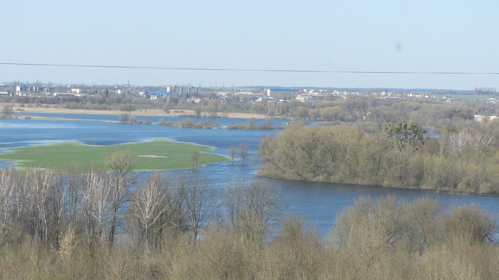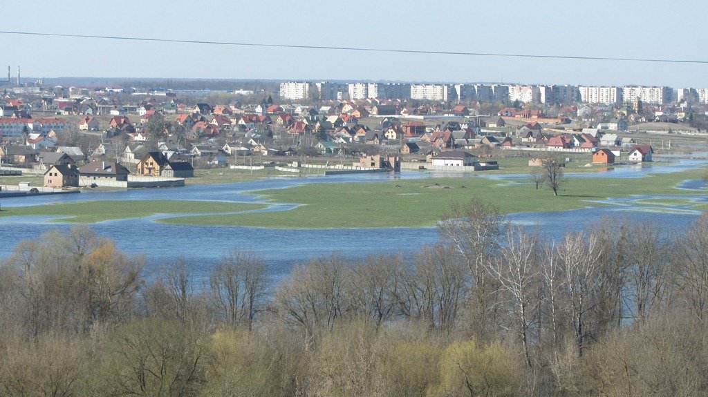 Так виглядала повінь на річці Стир в квітні 2013 року. На задньому плані село Рованці і мікрорайон Луцького підшипникового заводу (знімок зроблено 23 квітня 2013 року)