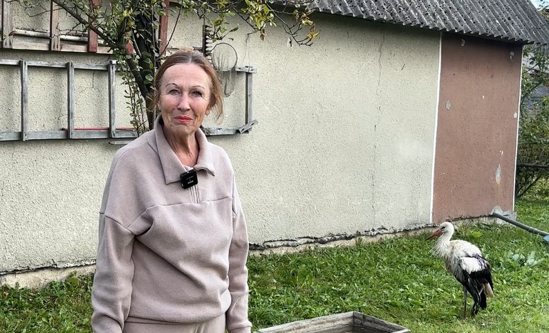 «Уже став частиною сім’ї»: вчителька з Волині виходжує лелеку зі зламаним крилом