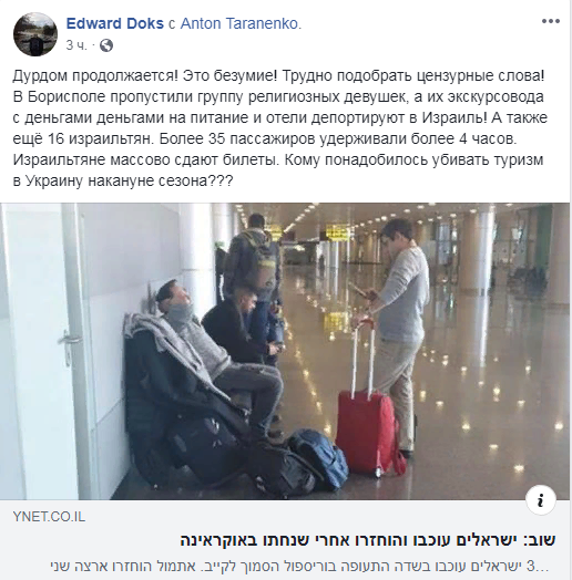 «Екскурсовод з грошима на харчування та готелі депортують в Ізраїль! А також ще 16 ізраїльтян. Понад 35 пасажирів утримували більше 4 годин.