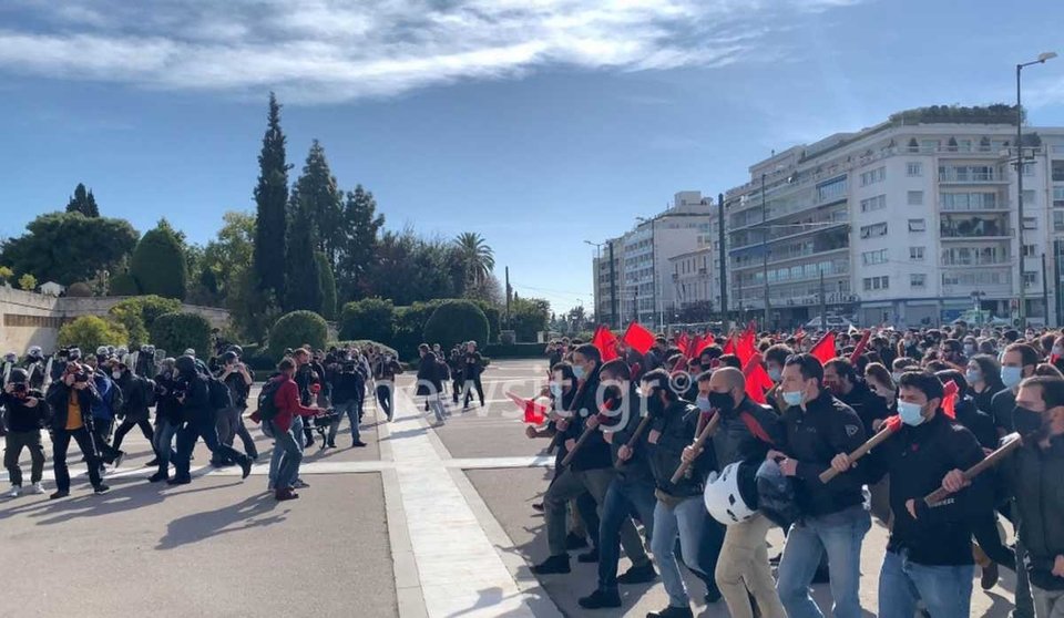 Також мали місце затримання низки учасників демонстрації, що переросла в заворушення в центрі Афін.