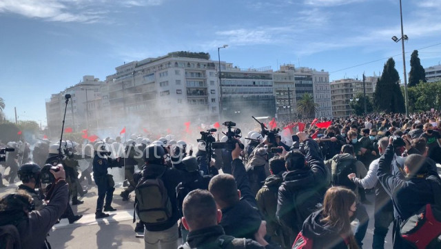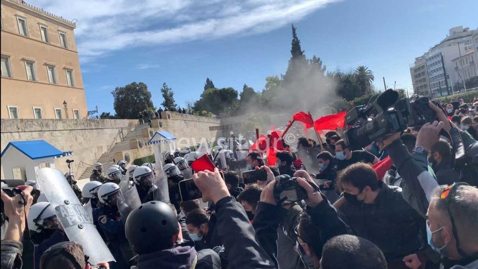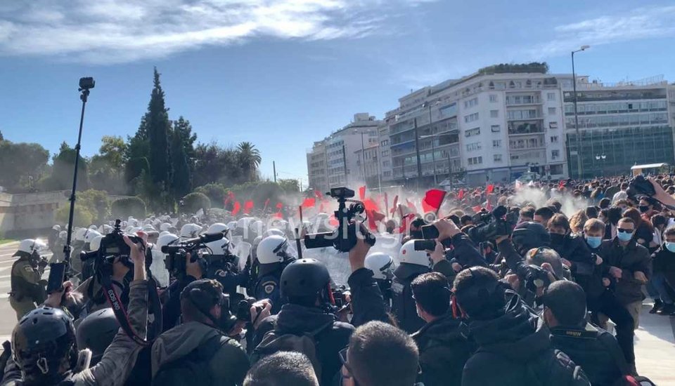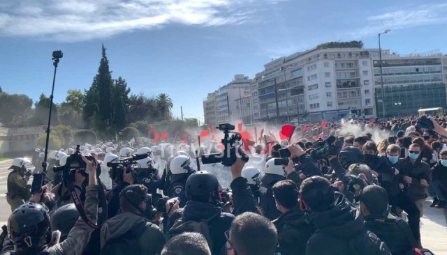 Грецькі правоохоронці у середу застосували силу для розгону колони студентів та викладачів на центральній афінській площі Синтагма поблизу парламенту.