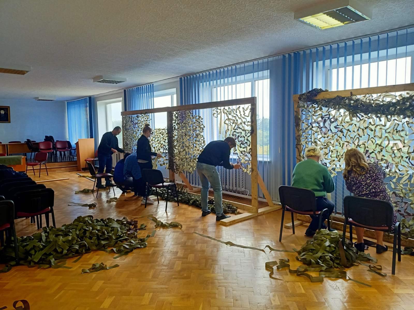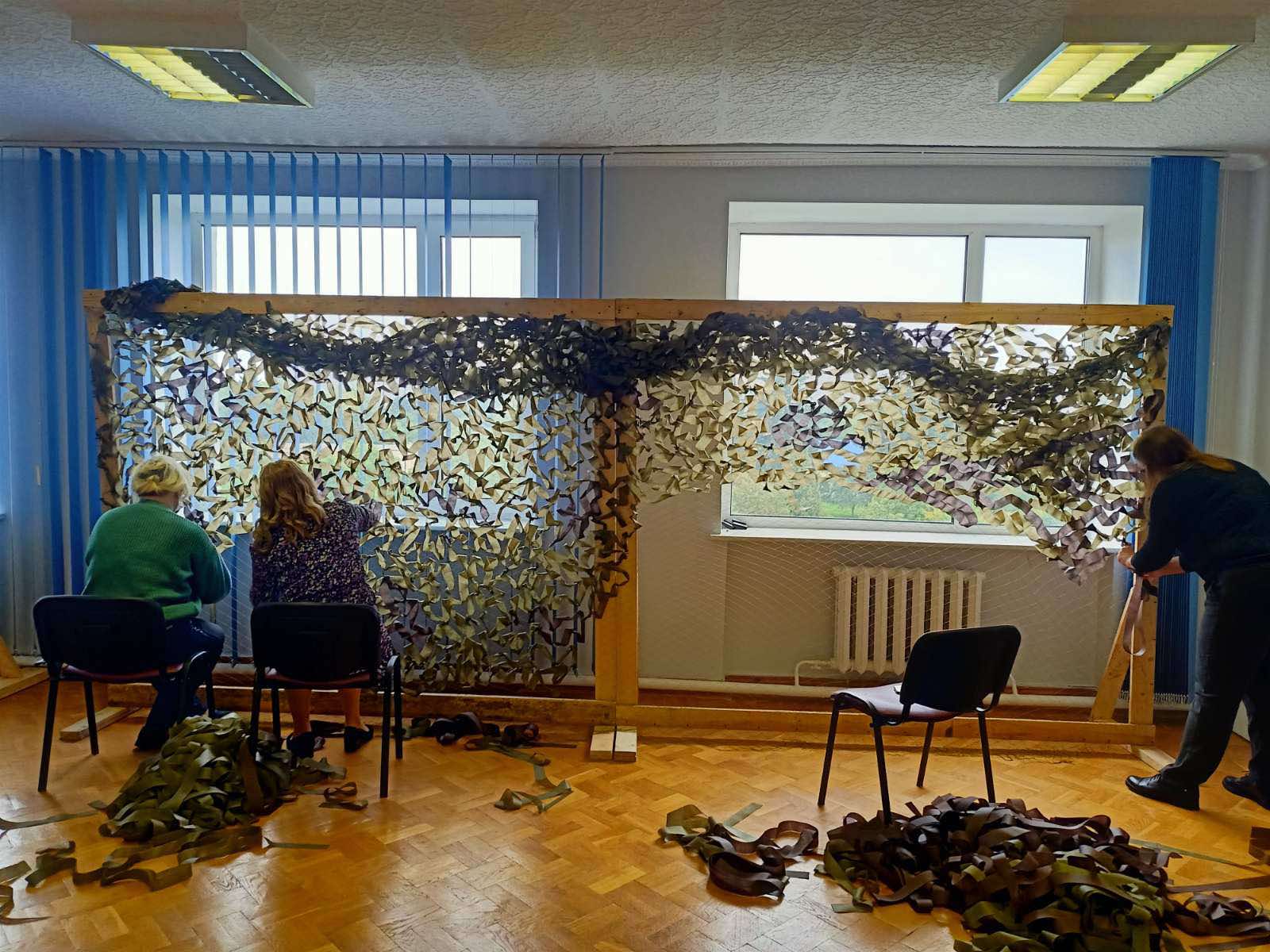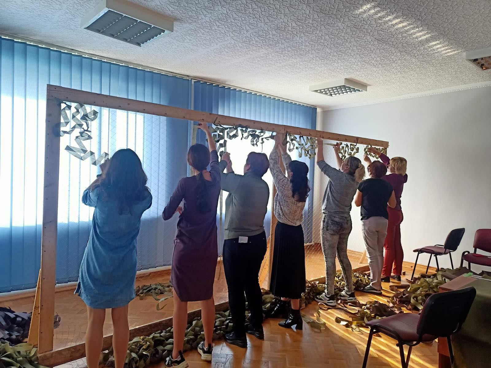 Актову залу КП «Луцькводоканал» переобладнали під мініцех для виготовлення якісних і легких маскувальних сіток, в яких мають постійну потребу українські захисники.