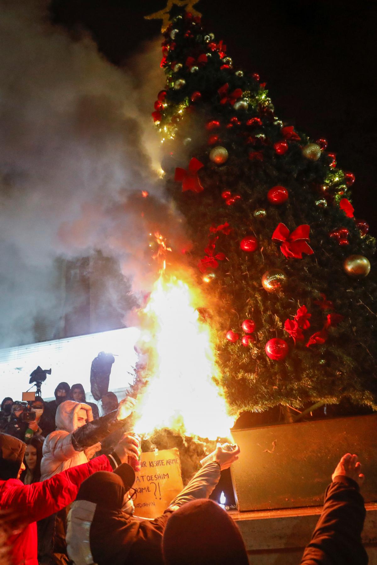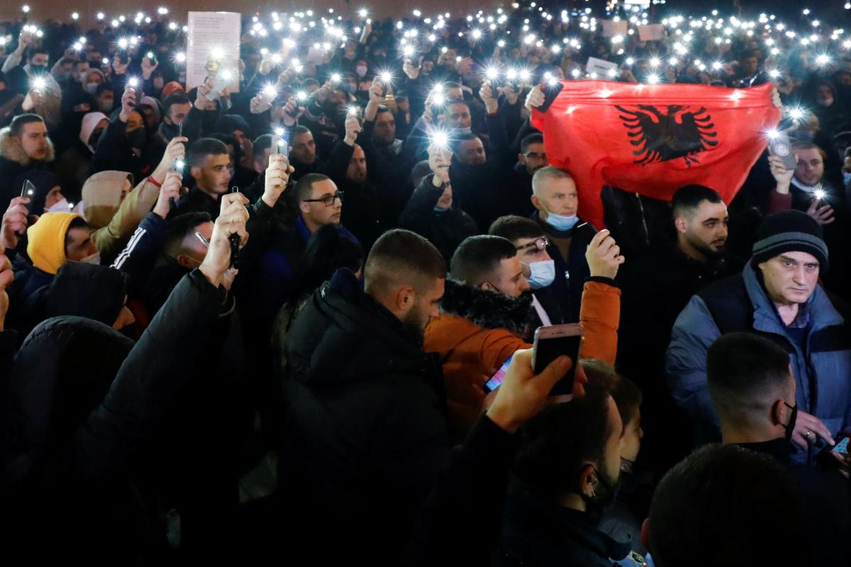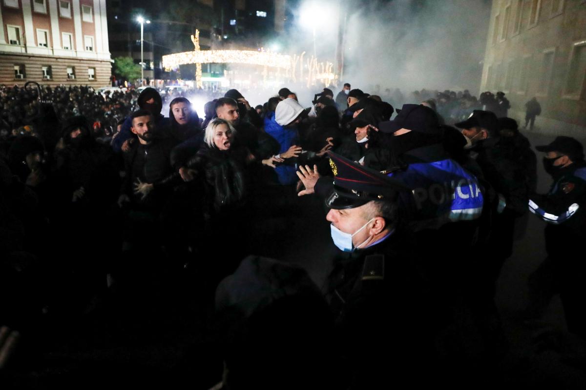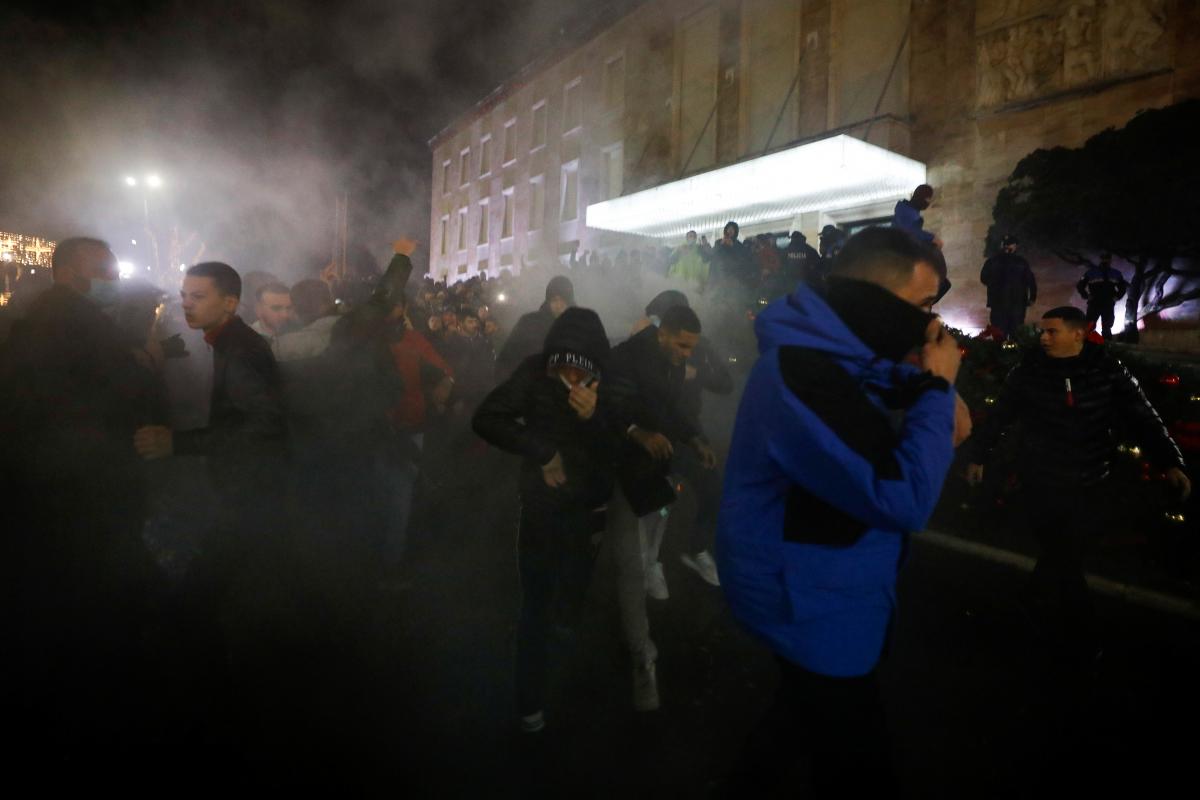 Як повідомляється, поліція застосувала сльозогінний газ для розгону сотень албанців, які протестують проти вбивства поліцією молодої людини, яка порушила комендантську годину.