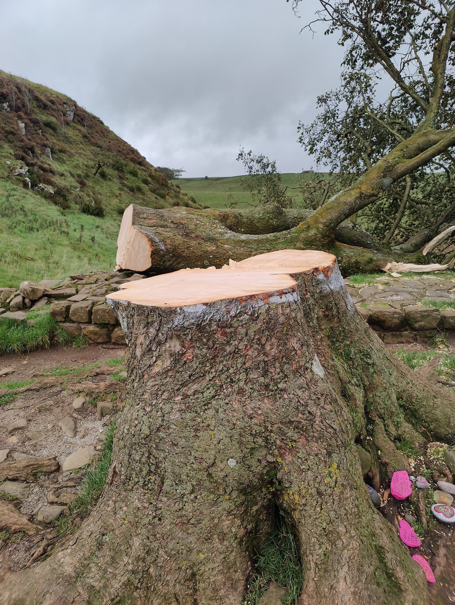 Дерево Sycamore Gap, яке росло в невеликій ущелині між двома пагорбами, треба прибрати, щоб захистити 1900-річну римську стіну (стіну Андріана), біля якої воно росло. Під час його падіння стіна отримала «деякі пошкодження».
