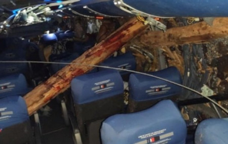 Водій вантажівки, що перевозила колоди евкаліпта, не впорався з керуванням машиною на повороті. Транспортний засіб занесло, в результаті чого перекинувся його причіп. При цьому вантаж потрапив в автобус і фургон, що їхали зустрічною смугою.