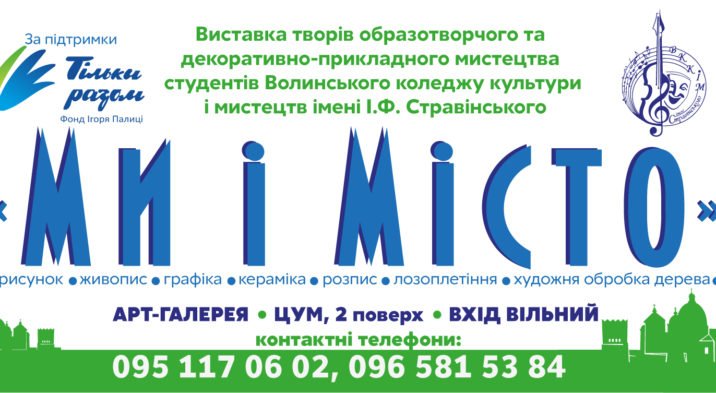 2 березня в Арт-галереї Фонду Ігоря Палиці «Тільки разом», що в Центральному універмазі Луцька (другий поверх), відбудеться відкриття виставки творів образотворчого та декоративно-прикладного мистецтва, реставрації студентів Волинського коледжу культури і мистецтв І. Ф. Стравінського «Ми і місто».