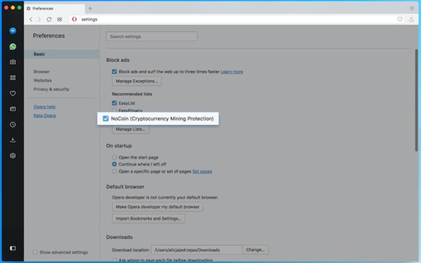 В браузері Opera додали захист від сайтів-майнерів криптовалют