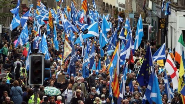 У шотландській столиці Единбург десятки тисяч людей вийшли на марш за незалежність. Відповідні гасла значилися на плакатах та транспарантах.