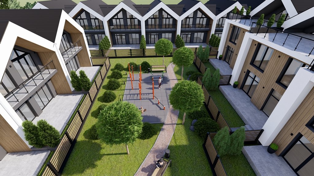 Унікальний стиль будинків – Barn House, який забезпечить прекрасні краєвиди з вікон на парк, а також можливість облаштувати власну терасу для кожного з власників будинків.