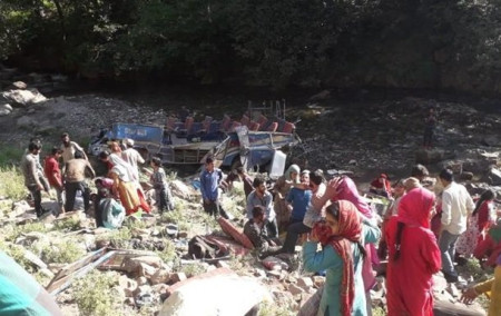 Інцидент стався рано вранці, коли автобус прямував з населеного пункту Кешвана в округ Кіштвар. Згідно з попередніми даними, водій не впорався з керуванням на складній ділянці дороги, після чого машина впала в ущелину. Зараз на місці події працюють рятувальники. Поліція веде розслідування інциденту.