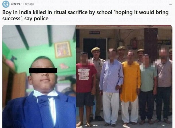 В індійському місті Хатхрас директор та вчителі однієї з приватних шкіл задушили учня, щоб забезпечити процвітання своєму закладу.