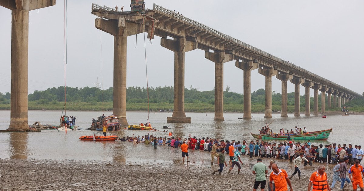 В окрузі Вадодара, що в індійському штаті Гуджарат, у середу зранку сталася трагічна аварія – обвалився міст Муджпур Гамбхіра, внаслідок чого близько семи автомобілів злетіли у річку Вішвамітрі.