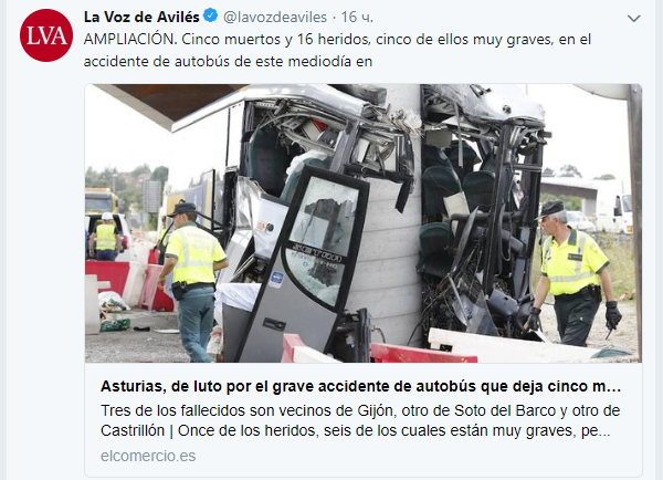 В результаті зіткнення пасажирського автобуса з опорою мосту в регіоні Астурія на півночі Іспанії загинули щонайменше п'ятеро людей та десятки отримали поранення.
