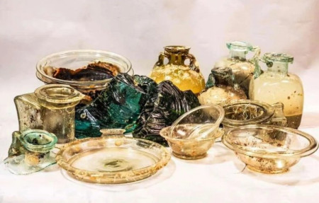 Тепер вчені виявили різні скляні предмети, зокрема скляні пляшки, вишукані чашки і миски, два бронзові тази та декілька амфор.