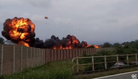 За попередніми даними, літак впав на злітно-посадкову смугу і у результаті вибуху зачепив автомобіль. Військові джерела повідомили, що під час польоту літак міг зачепити птах.