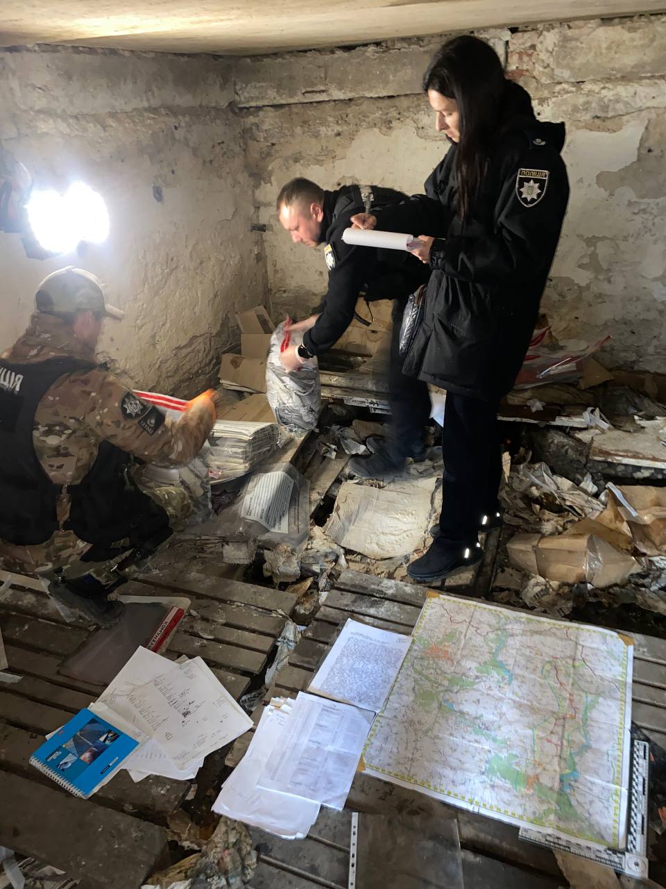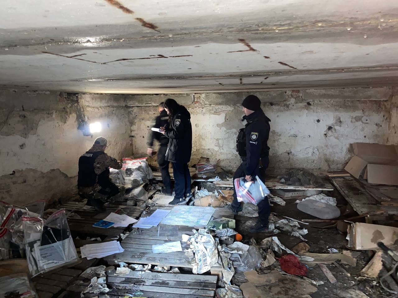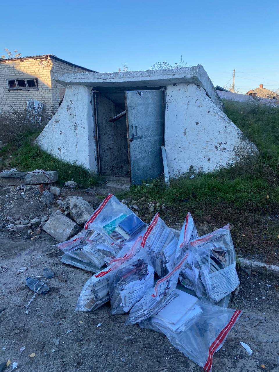 Виявили «знахідку» на території ліцею в місті Ізюм у підвальному приміщенні. Поліцейські вилучили 13 мішків з документами.