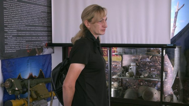 Подивитися експозицію до музею прийшла дружина загиблого воїна Михайла Федоровича Оксана. Каже: чоловік і син пішли служити разом.«1 квітня вони стали учасниками бойових дій в Луганській області, а 22 квітня чоловік загинув. Син служить, зараз у Лимані», – каже жінка.