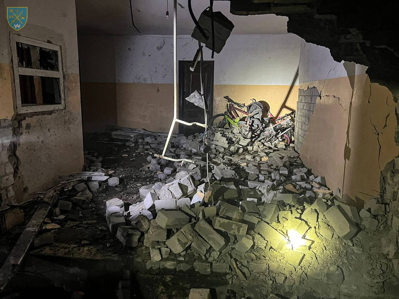 Внаслідок падіння уламків збитих дронів-камікадзе пошкоджено гуртожиток. Постраждало 11 осіб, з них 3 дитини. Дітей та двох дорослих госпіталізували. У двох 8-річних хлопчиків та 12-річна дівчинки контузії та закриті черепно-мозкові травми, в дорослих струси мозку та поранення», – написав голова ОВА.