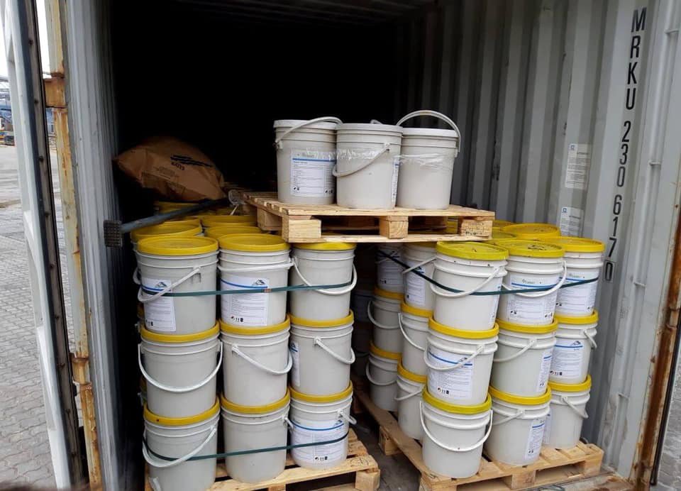 «При огляді вантаж сканували, залучили кінологічну службу, але наркотики не виявили. Фарба – нетиповий товар для Південної Америки. Тому зразки відібрали для проведення лабораторних аналізів. Вони показали, що в деяких відрах у складі фарби міститься наркотичний засіб – кокаїн», – сказано в повідомленні.