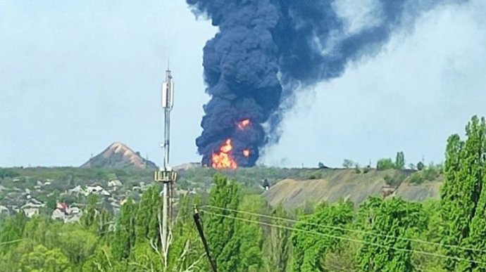 Російське видання РИА «Новости» з посиланням на дані сепаратистів повідомляє, що на нафтобазі в Макіївці через обстріл загорілися чотири резервуари по п’ять тисяч тонн кожен.