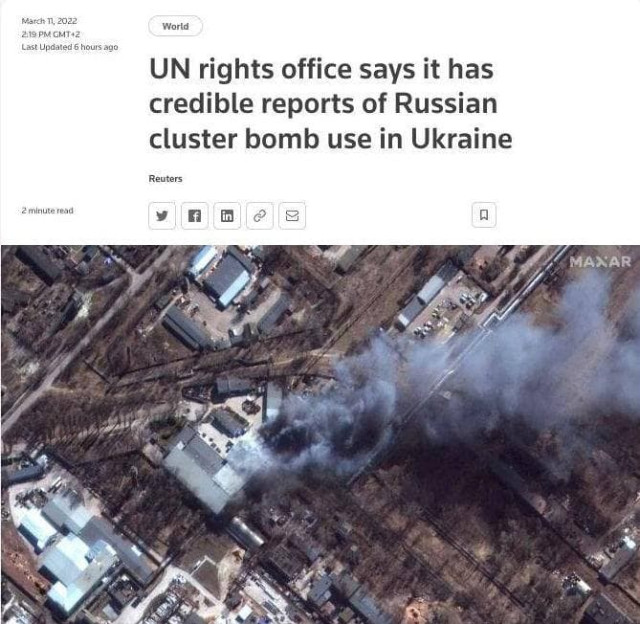 «Застосування касетних боєприпасів у населених пунктах несумісне з принципами міжнародного гуманітарного права», - йдеться у повідомленні Управління Верховного комісара ООН з прав людини.