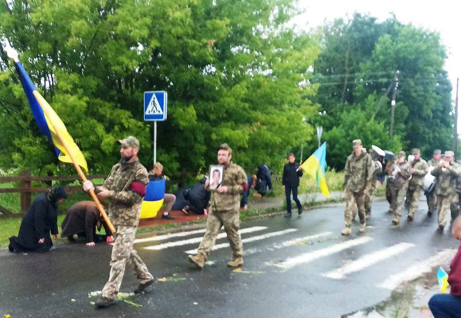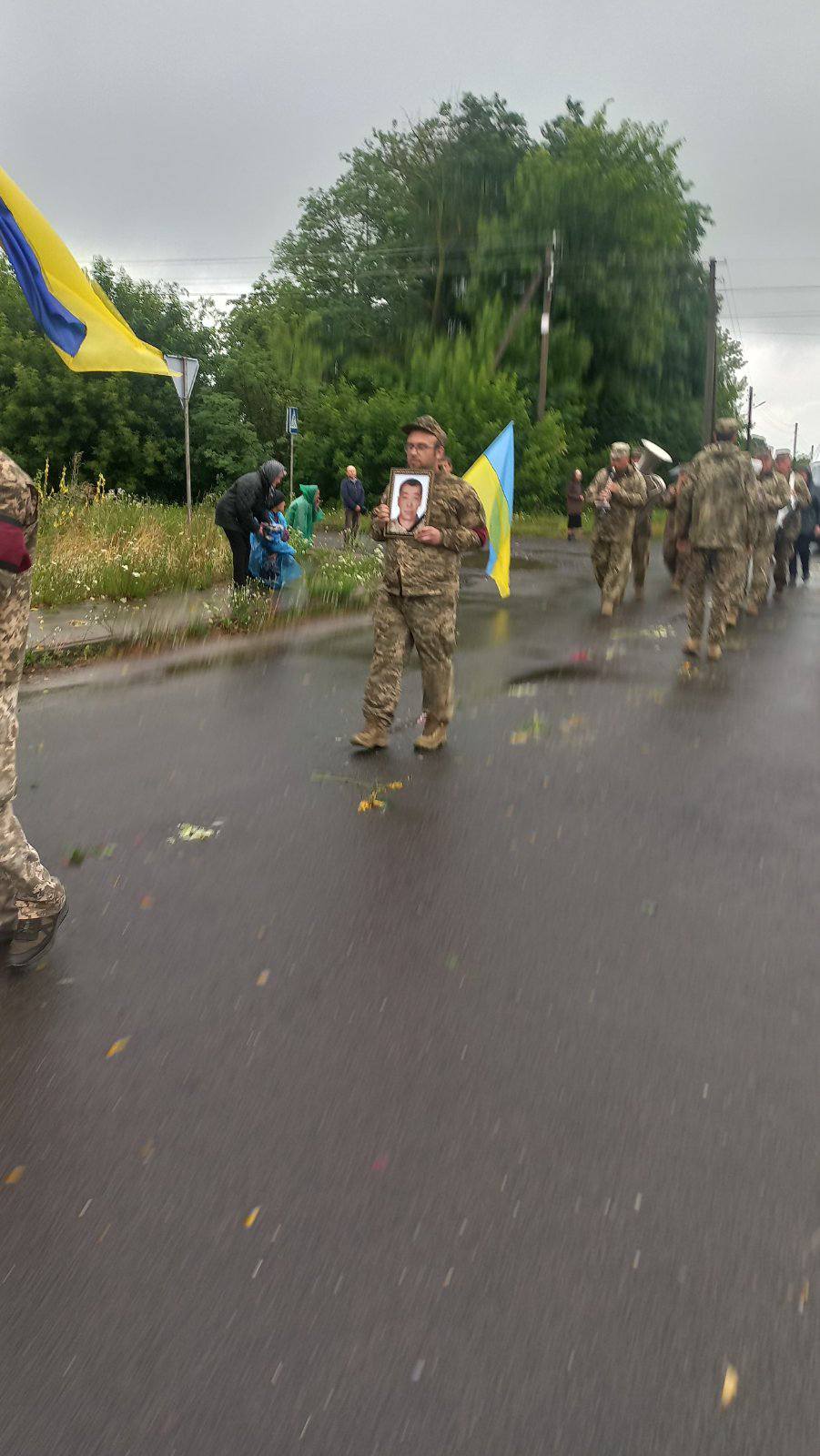 Проводжали Олега Олексійовича на колінах, зі смутком та сльозами в очах рідні, побратими, друзі, знайомі, односельчани та просто небайдужі жителі громади.