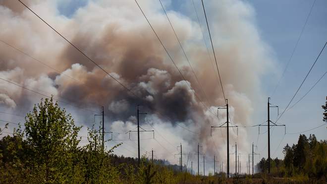 У лісах регіону ввели режим надзвичайного стану. Місто охопило декілька шарів смогу, а в повітрі відчувається запах диму.