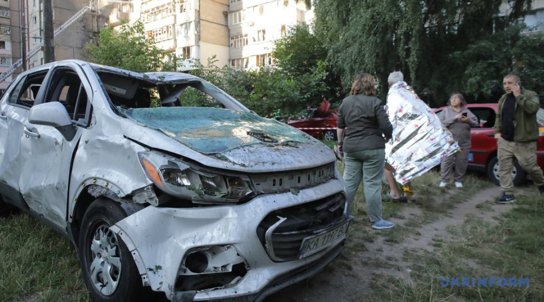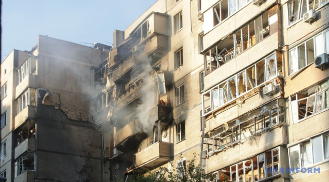 В Святошинському районі Києва внаслідок атаки пошкоджені 12 будинків та п’ять закладів освіти, Свириденко показала руйнування у будівлі Кабміну
