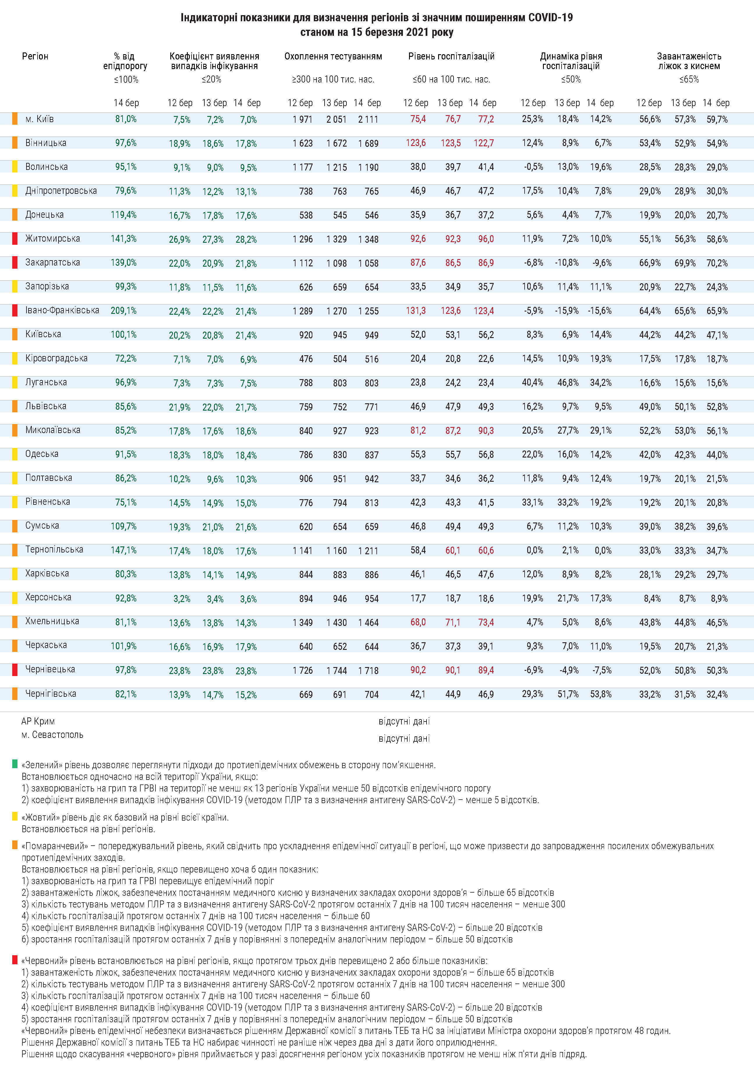 «Помаранчева» зона тепер складається з 11 регіонів – Києва, Вінницької, Донецької, Київської, Львівської, Миколаївської, Сумської, Тернопільської, Хмельницької, Черкаської та Чернігівської областей.