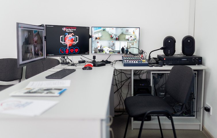 У ній містяться камери, мікрофони, а також медичне обладнання, штучні руки, ноги, сідниці, які можуть бути підключені до комп’ютера.2 кімната – приміщення для інструктора.
