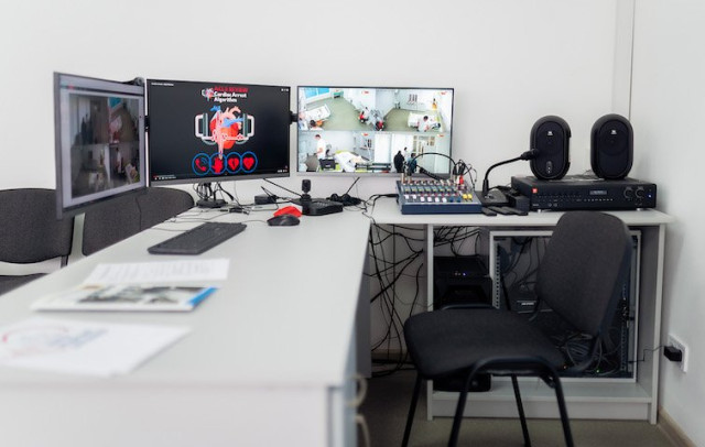 У цьому приміщенні студенти з викладачем переглядають записане відео своєї роботи. Аналізують, як вони виконували маніпуляції, виявляють помилки.