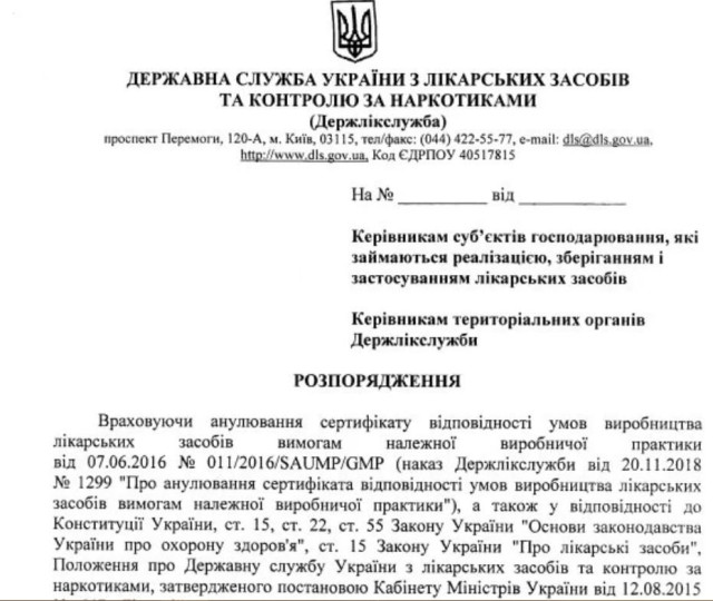 Як передає 24 канал, про це йдеться у розпорядженні Державної служби України з лікарських засобів та контролю за наркотиками.