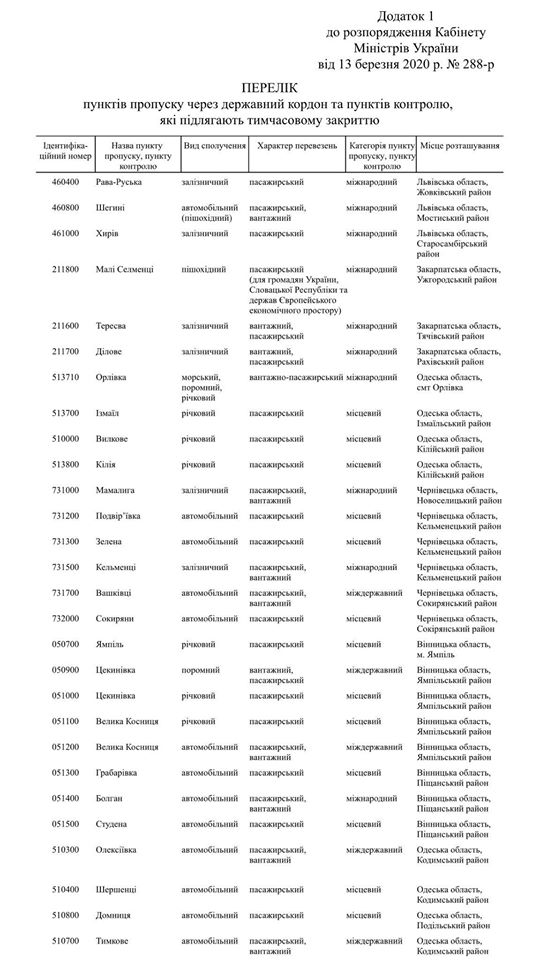 Документом передбачено тимчасово, з 00 год. 00 хв. 17 березня 2020 року до 3 квітня, закрити пункти пропуску через державний кордон для міжнародного пасажирського повітряного сполучення (за виключенням низки категорій громадян).