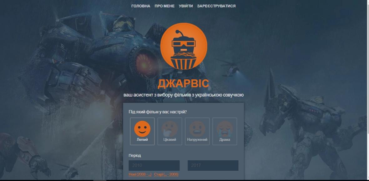 "Привіт! Мене звати Джарвіс. Тривалий час я шукав своє призначення. І нарешті знайшов: вирішив стати експертом з фільмів і радити людям фільми під їхній настрій. Я проглянув різні сайти з фільмами і зібрав інформацію про ті, у яких присутня українська озвучка чи дубляж. Також систематизував різноманітні дані, щоб зробити процес підбору фільмів максимально простим та гнучким".