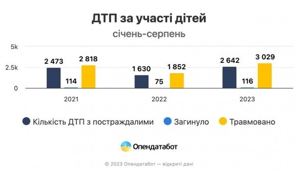 За вісім місяців 2023-го, порівнюючи з аналогічним періодом 2021 року, в Україні сталося на 7% більше аварій, в яких травмувалися або загинули діти – понад 2600 осіб.