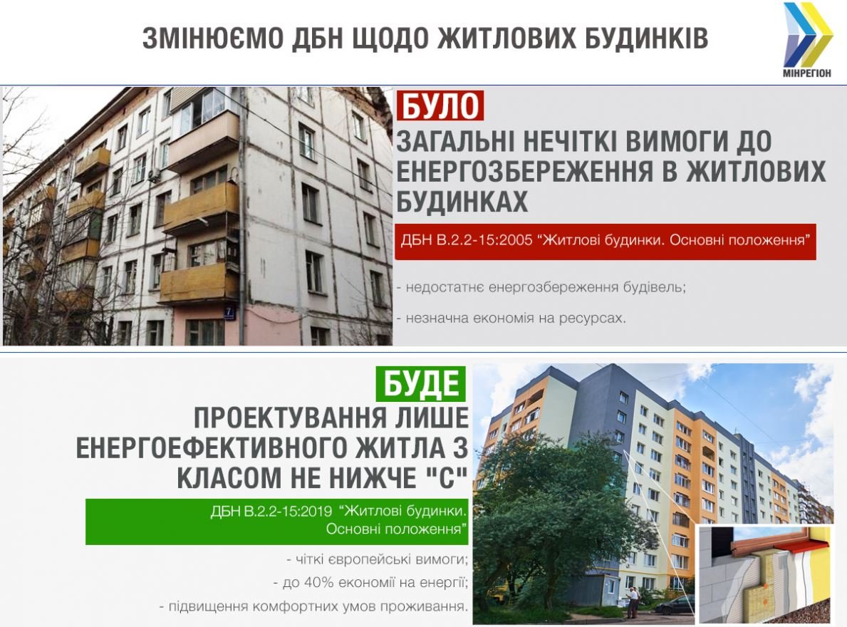 З 1 грудня в Україні набудуть чинності нові державні будівельні норми (ДБН) щодо проектування житлових будинків «Житлові будинки. Основні положення» з підвищеними вимогами до енергоефективності, відкритості і доступності житла.