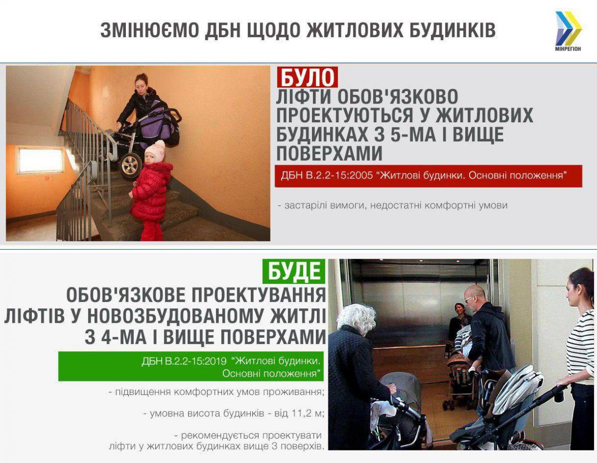 «Вони (нові ДБН, – ред.) дозволяють проектувати кухні-ніші у квартирах, підвищують вимоги до енергоефективності житла, його відкритості і доступності, регламентують обов’язкові ліфти в будинках з 4-ма і більше поверхами, прибирають стару норму проектування радіоточок в кожній квартирі, дозволяють вбудовувати громадські заклади на будь-яких поверхах і ще багато інших змін», – цитує прес-служба Парцхаладзе.