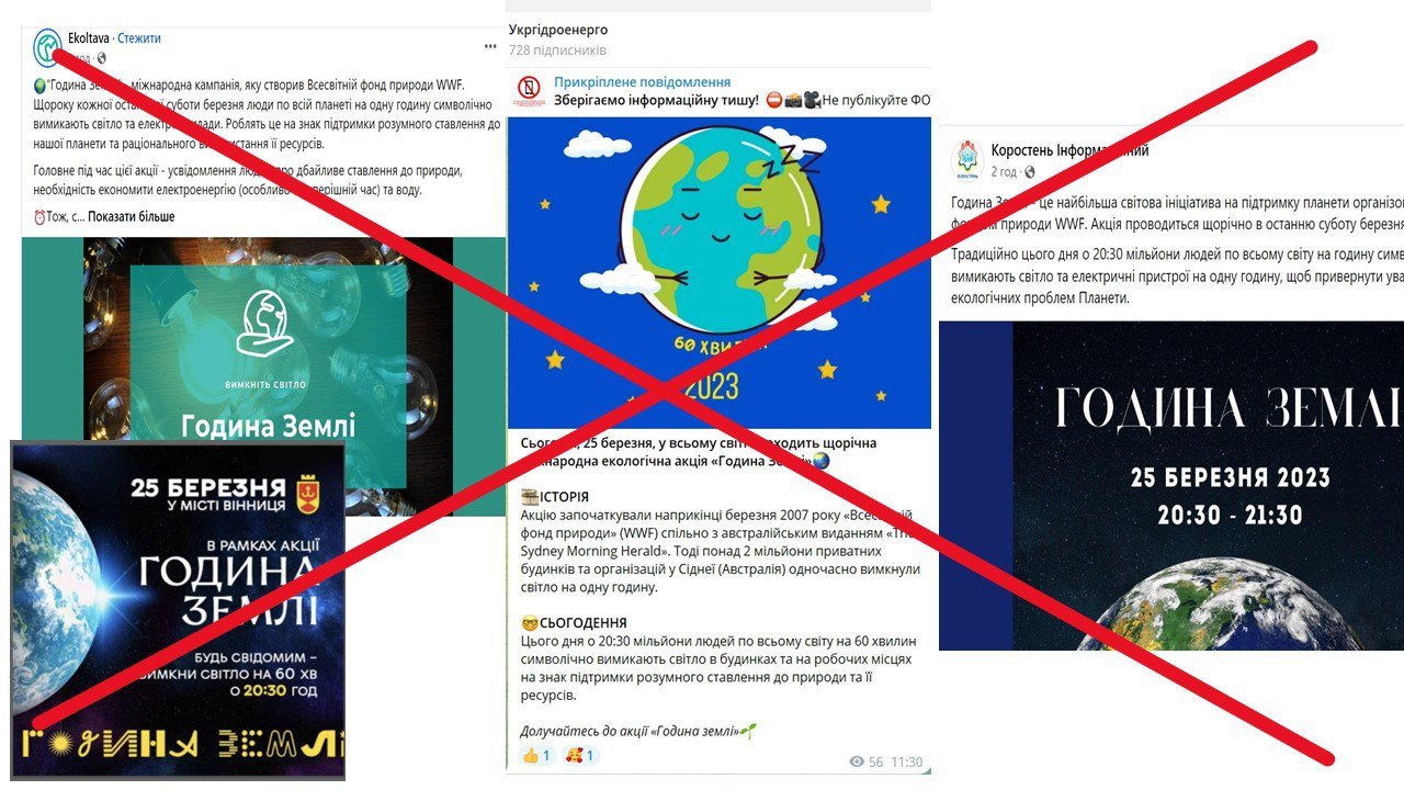 В Укренерго закликають не вестися на заклики долучитися до «Години Землі» і не вимикати масово в певний час світло, адже це не сприяє економії електроенергії, не допомагає Землі, зате може дуже нашкодити енергосистемі.