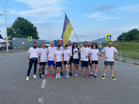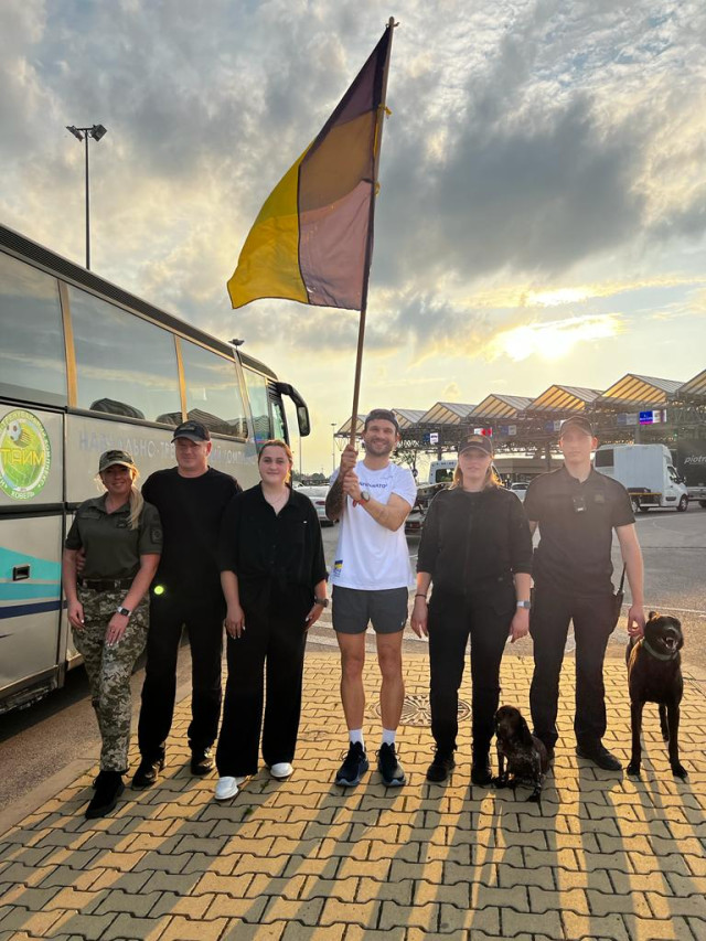 На українсько-польському кордоні прикордонники зустріли учасників ультрамарафону «Піднімаю прапор за Україну в НАТО», який 25 червня стартував у Києві. Спортсмени долали маршрут з прапором, що його отримали від військових з Бахмута.