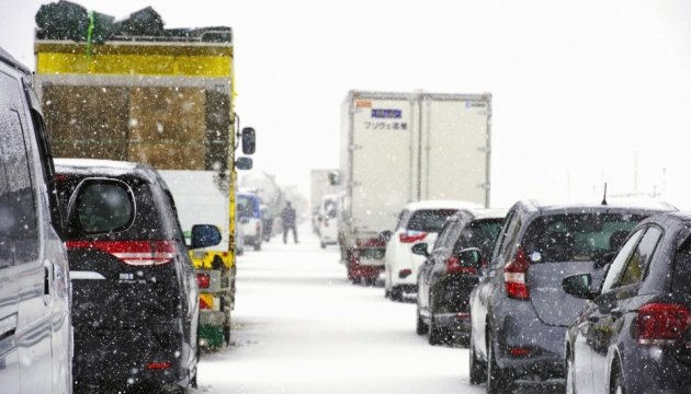 Через сніговий шторм приблизно 90 автомобілів застрягли на трасі біля узбережжя моря на заході Японії.