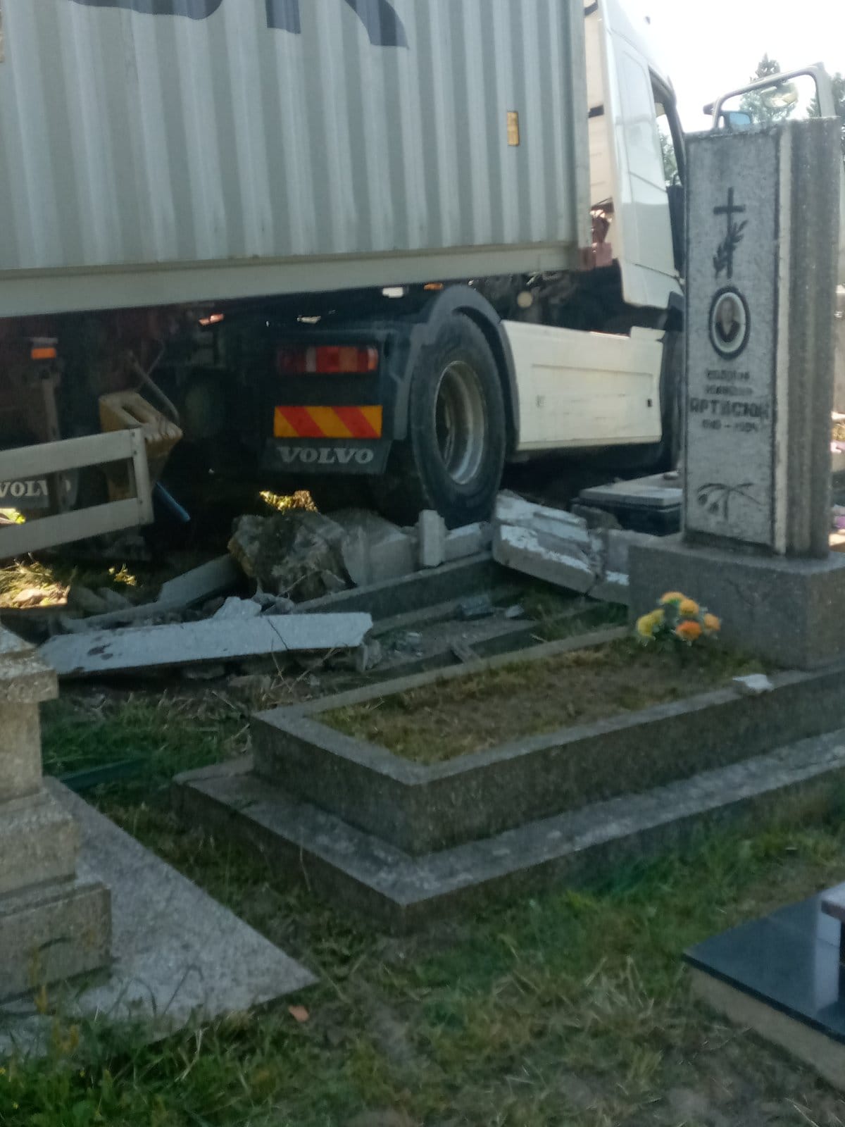 Днями у Володимирській громаді трапилась ДТП – вантажівка влетіла на територію Федорівського кладовища. Унаслідок аварії були пошкоджені огорожа та кілька пам'ятників у першому секторі поховань.