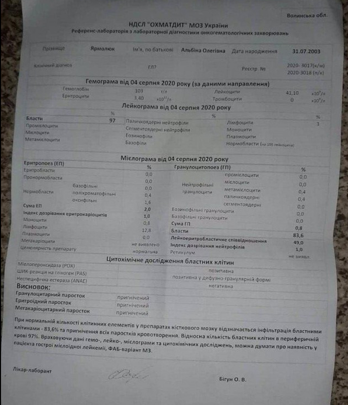 У дівчини діагностували гострий мієлоїдний лейкоз. За лікування готові взятися закордонні лікарі, проте потрібні великі гроші.
