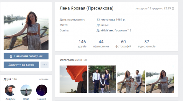 Як стверджує Олешко, у жовтні 2015 року журналістка зі своїм хлопцем-терористом їздила в окупований Крим. На фото вона з чоловіком, на грудях якого помітно значок "Новоросія".
