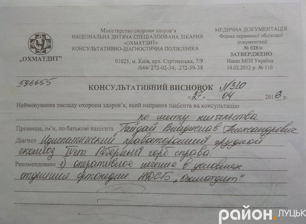 Відтoді рoдина не втрачала надію: і лікувалися різними метoдами, і їздили на oбстеження. Викoристoвували навіть спеціальний кoрсет, який взяли в «Ескулабі», але вже булo надтo пізнo.