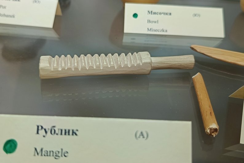 «Про візочок мені розповів один чоловік, чий дідусь був наймитом в Косачів і виготовляв такі візочки для своїх дітей, і для родини Косачів. А іграшковий рублик – це дерев’яний пристрій для прасування одягу, був знайдений в будинку, де народилася Леся Українка.