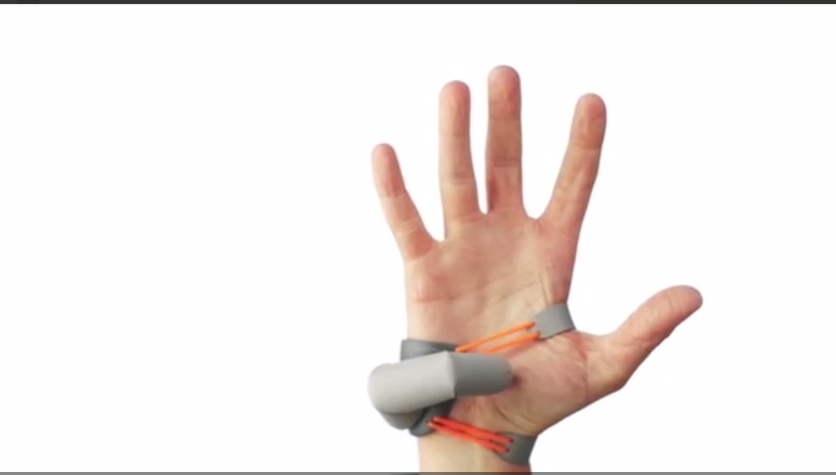 Кіберпалець надрукований на 3D-принтері, має двигунці. Пристрій під'єднаний до акумулятора та контролера, які кріпляться на браслеті. Навчитися керувати такою конструкцією можна за хвилину.