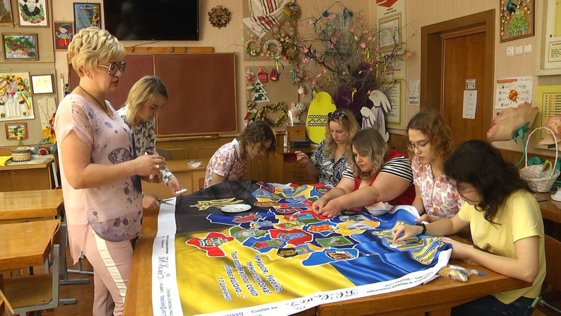 У Луцькому ліцеї №21 учні, вчителі та батьки вишивають карту України. Розпочали роботу 18 травня, у День української вишиванки.