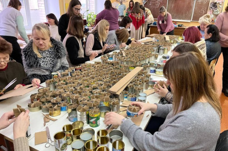 50 вчителів Луцької гімназії № 20 на канікулах збиралися для виготовлення окопних свічок. Від початку повномасштабної війни педагоги вже передали українським бійцям їх понад п’ять тисяч.