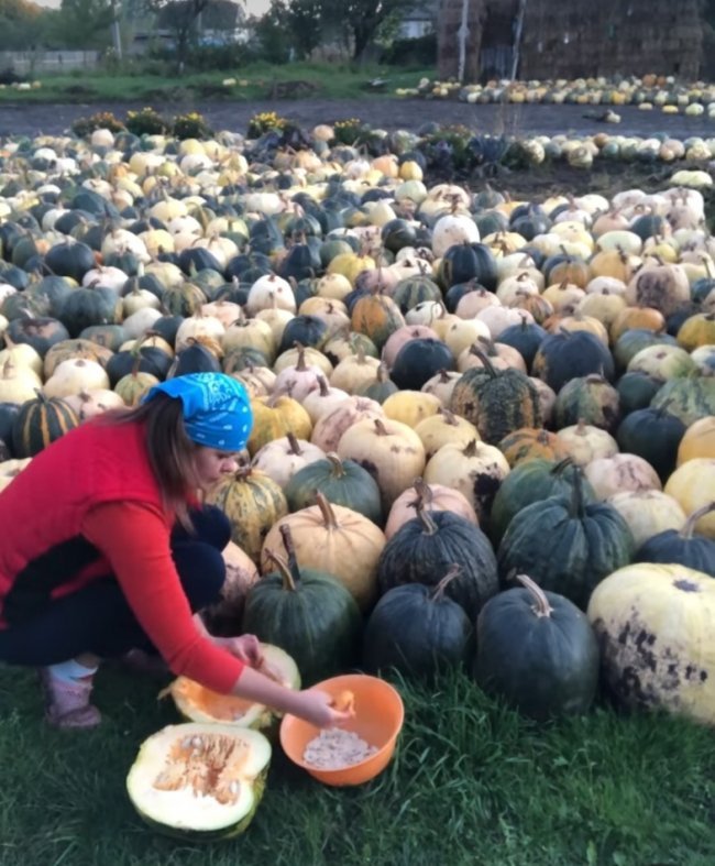 Наступної весни пані Олеся планує збільшити кількість видів капусти на своєму городі. Вирішила перевірити, чи вдасться виростити Кале і Романеско. Крім того, популярність в Інстаграмі підштовхує збільшити і площі посадки. Адже тепер багато підписників висловлюють бажання придбати в неї овочі.Гарбузове насіння як сувеніри